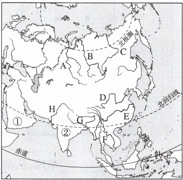 答案:答案(1)太平 印度 (2)阿拉伯半岛 印度半岛 长江 (3)恒河 澜沧江—湄公河 (4)北冰 太平 印度 放射 中部高、四周低