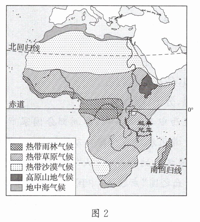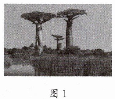 猴面包树喜热耐旱,干季完全落叶,湿季时可大量储水于树干中。猴面包树在撒哈拉以南非洲分布较广,果实可食用,常在粮食供应不足时被当地居民当作粮食充饥,被称为“生命之树”。读某摄影师在坦桑尼亚拍摄的猴面包树照片(图 1)和非洲气候类型分布图(图 2),完成 9~10 题。