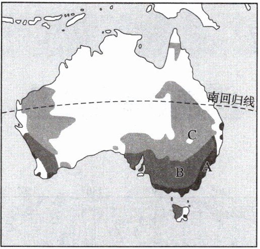 (3)澳大利亚热带沙漠气候和热带草原气候分布广。(