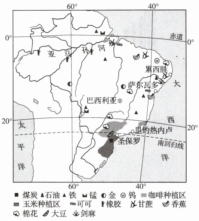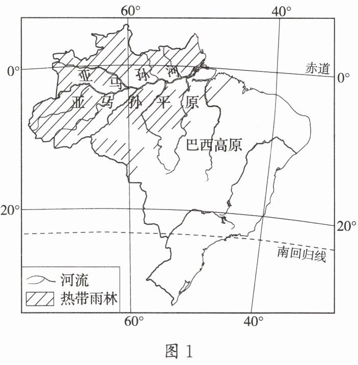 (1)读图 1,说出巴西热带雨林的分布地区。