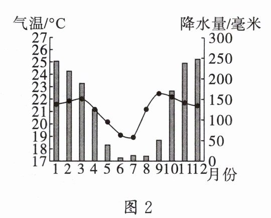 (3)观察图 2,推测亚马孙热带雨林易发生火灾的月份。