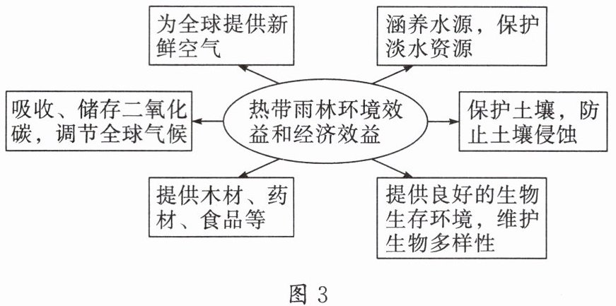 材料二 亚马孙热带雨林的环境效益和经济效益示意图(图 3)。