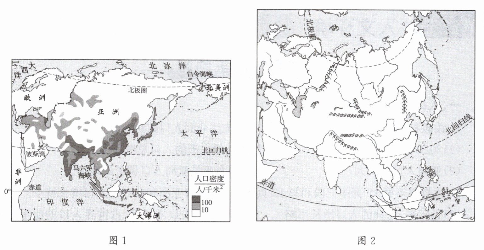 2. 亚洲的人口稠密区多位于河流的中下游,河流可以为农业生产提供水源等自然条件,但亚洲北部河流中下游地区人口稀疏,原因是(
