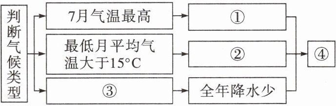 某中学地理学习小组绘制了一幅框图,探究沙特阿拉伯的气候类型。读图,完成1~2题。