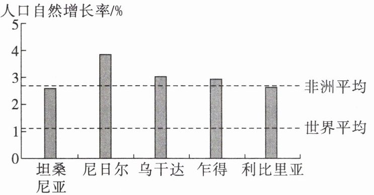 读撒哈拉以南非洲部分国家的年均人口自然增长率(2015—2020年)图,完成10~11题。