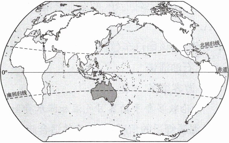 (2024·河北中考)小明学习了区域地理后,认识到地理位置对区域特征形成的重要性。为更好地了解澳大利亚,小明查找到一幅澳大利亚在世界的位置图进行学习。读图,完成12~13题。
