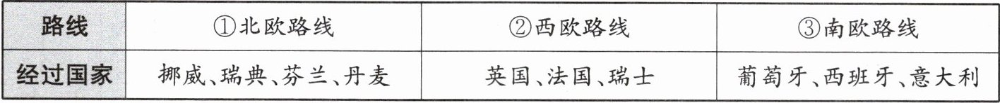 答案:答案 (1)③路线以地中海气候为主,夏季高温少雨,光照强烈;防晒物品可以阻挡紫外线的侵害,减少皮肤受损的可能性,防止晒伤、晒黑、晒斑等问题的发生。(2)自然条件:地形平坦,草场广布;终年温和湿润,适合多汁牧草的生长;水源充足。人文条件:经济发达;技术先进;市场广阔。(3)凡尔赛宫 埃菲尔铁塔(合理即可)