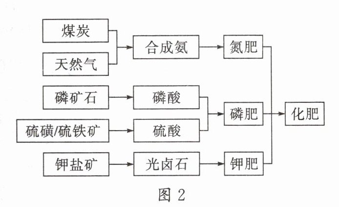 读俄罗斯矿产资源分布图(图1)和化肥生产流程图(图2),完成14~15题。