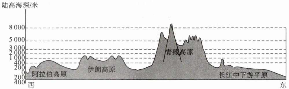 读亚洲大陆沿 $30^{\circ}N$ 纬线的地形剖面图,完成 3~4 题。