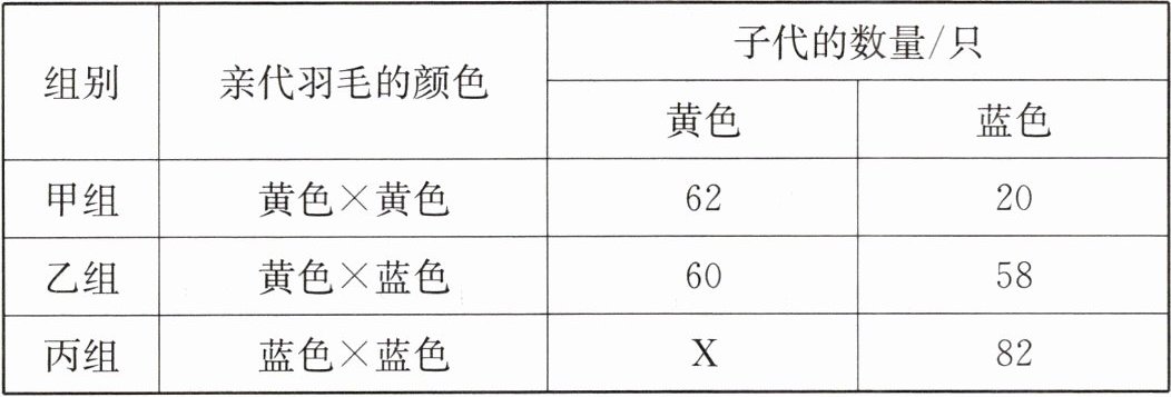 C.根据表中数据可以推断出乙组中的亲代黄色鹦鹉的基因组成是AA