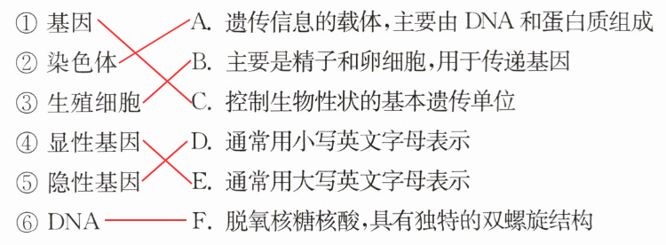 ⑤隐性基因 E. 通常用大写英文字母表示