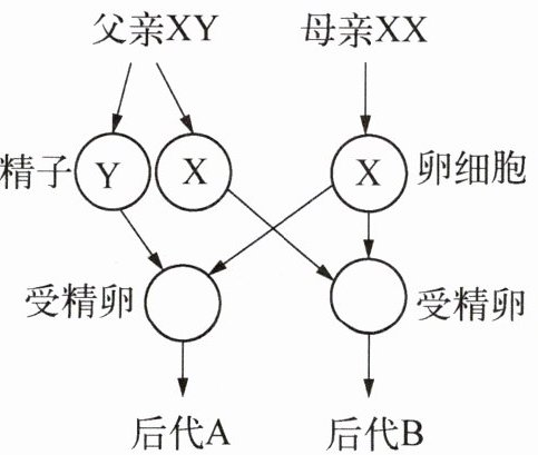 B.后代A的生殖细胞中的性染色体组成是X或Y