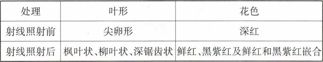 9. 研究人员用射线处理月季种子,从中选育出优质的新品种。射线照射前后植株的叶形和花色见下表。下列叙述中,正确的是(