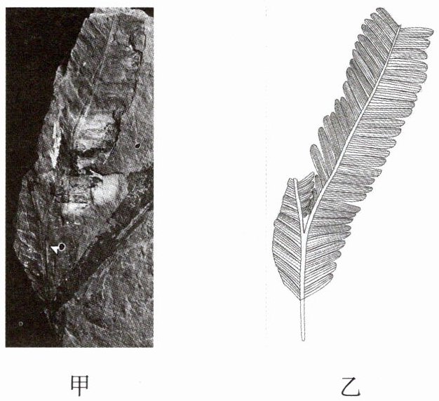 22 年,科研人员在我国华南地区的晚三叠世瑞替期地层(距今约 2.03 亿年)中,发现了中华叉羽叶(种子蕨植物)新化石。下图所示的是中华叉羽叶化石及其复原图。下列有关中华叉羽叶的叙述中,错误的是(