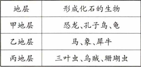 资料 2 考古学家在一些地层内挖掘到的化石统计见下表。