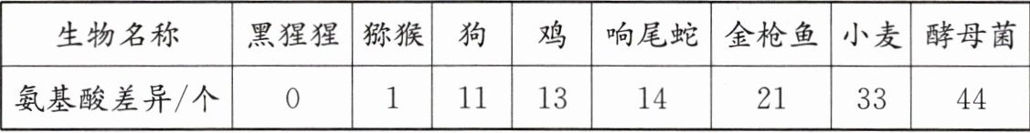 资料 3 下表所示的是几种生物与人的细胞色素 c 的氨基酸(蛋白质分子的基本单位)的差异比较。