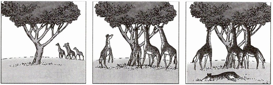 14. 下图是长颈鹿的进化过程示意图,请据图回答问题。