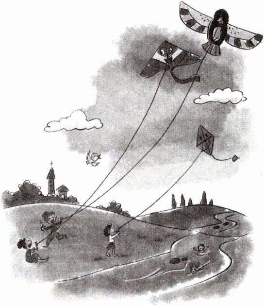 sky. Kylie has many colours and a long red tail. The second kite's name is Karla. The third kite is Krista. Kylie thinks about her beautiful colours. Karla