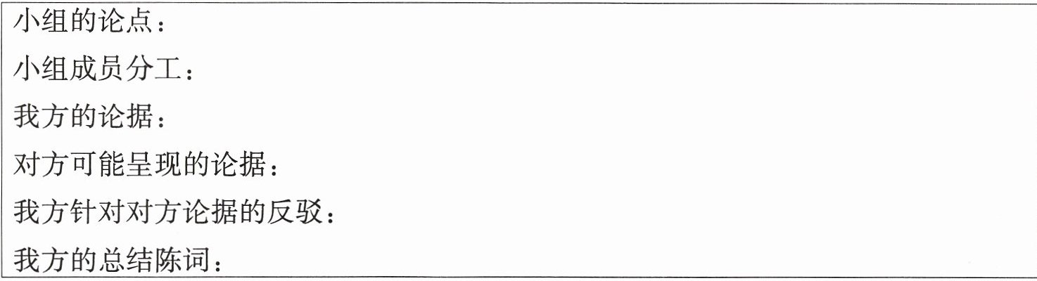小组讨论后确定的辩论方案