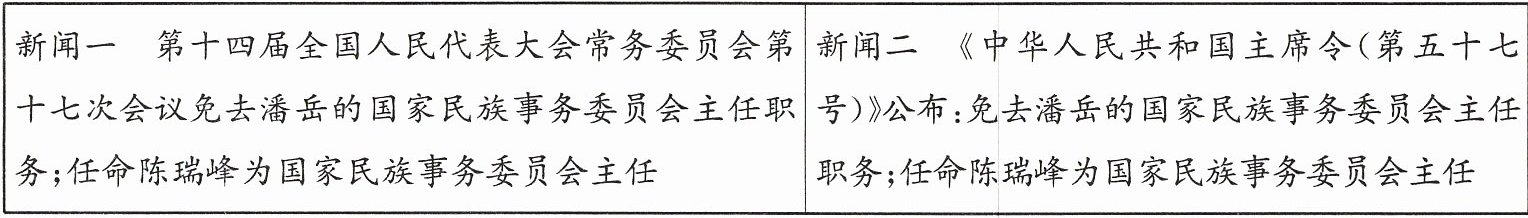 ①新闻二发生在新闻一之后 ②国家主席由全国人大选举产生 ③新闻一内容根据新闻二发布 ④国家主席根据全国人民代表大会的决定和全国人民代表大会常务委员会的决定行使任免权