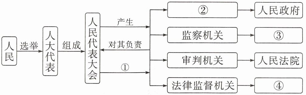 答案:11. (1)①监督;②行政机关;③监察委员会;④人民检察院。