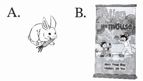 4. 句子 "I like the play The lion and the mouse." 意思是“我喜欢《狮子和老鼠》这个戏剧”,应选择与戏剧相关的图片,对应选项 B。