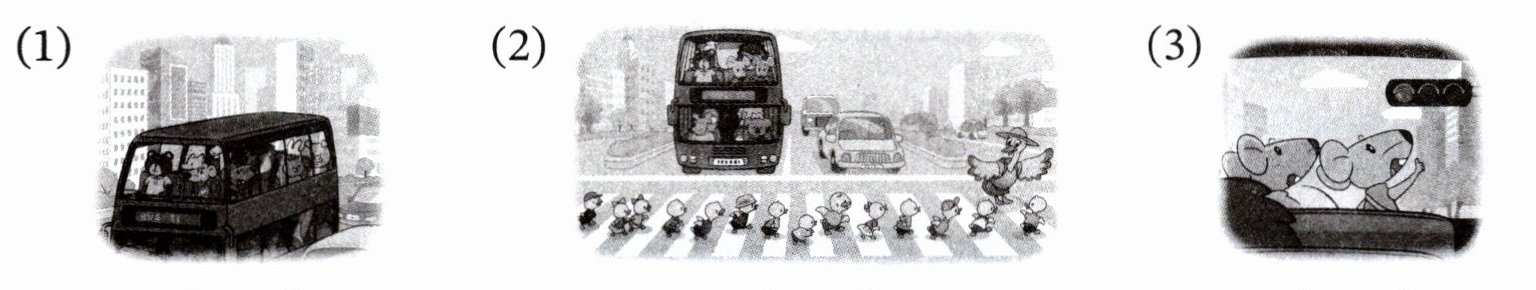 1. 根据课本第 26 页 Cartoon time 的内容,选择与图片内容相符的句子。