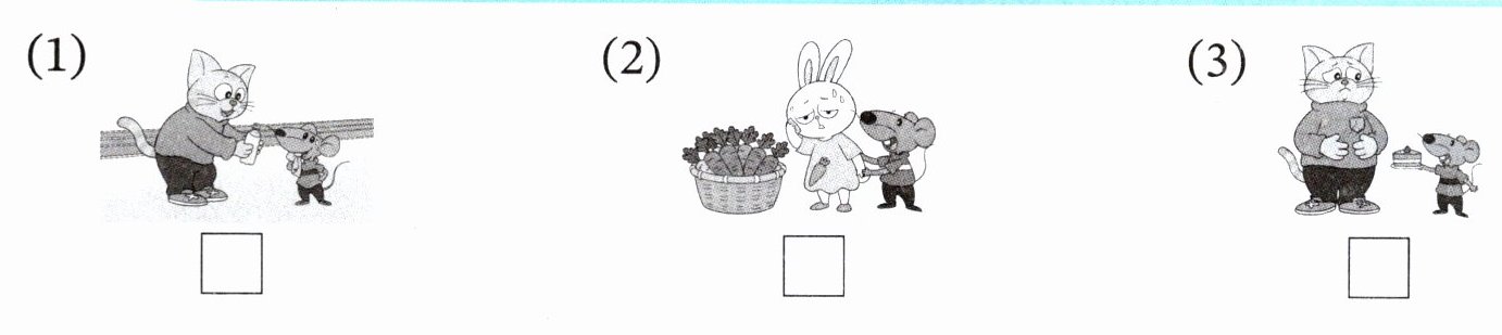 (3) 图3显示的是猫和老鼠,猫给老鼠一块蛋糕,老鼠表现出饥饿的样子,对应对话C。