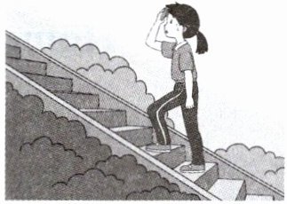 4. 图片4中女孩爬楼梯很累,“累的”译为tired,故填tired。