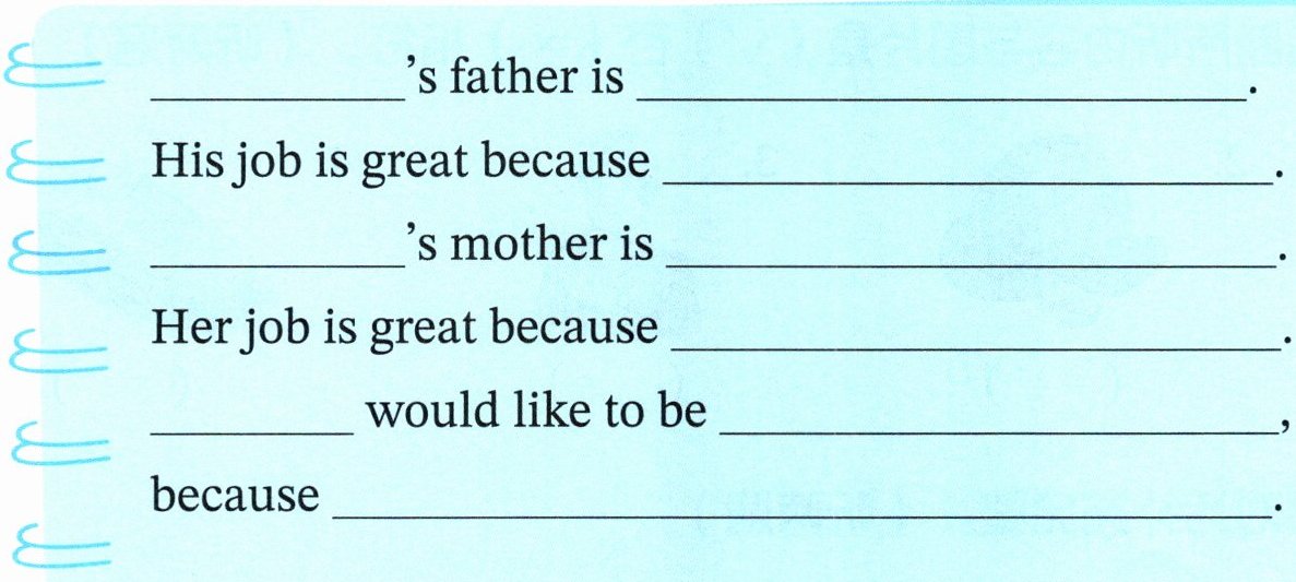 两人一组,互相询问对方父母的职业和对方的理想职业,并记录下来。