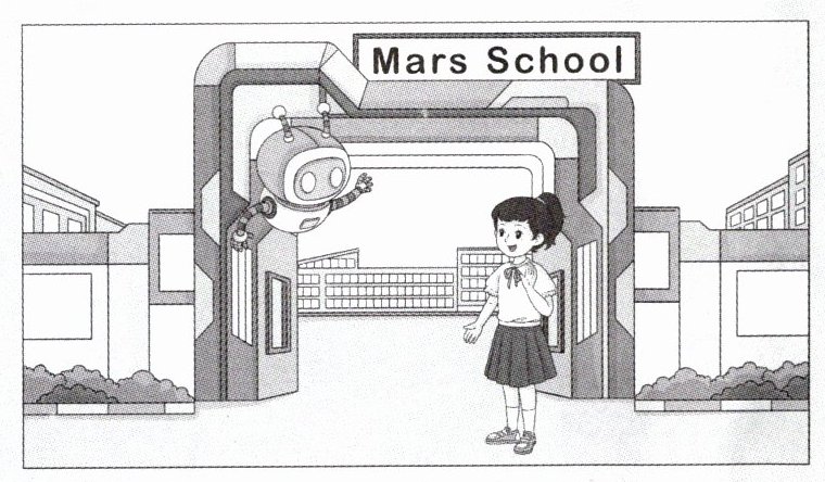 Roy: Hello, Kitty. I'm Robot Roy. Welcome to Mars School(火星学校)!