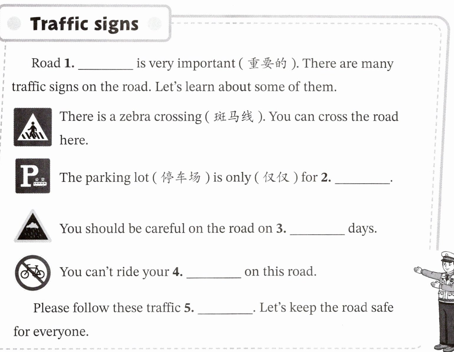 三、从方框中选择合适的单词补全交通安全宣传栏(其中有一个多余单词)。