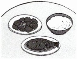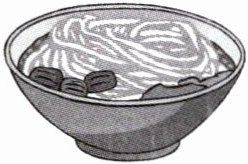 答案:1. glass, juice 2. rice, fish 3. cup, tea 4. noodles