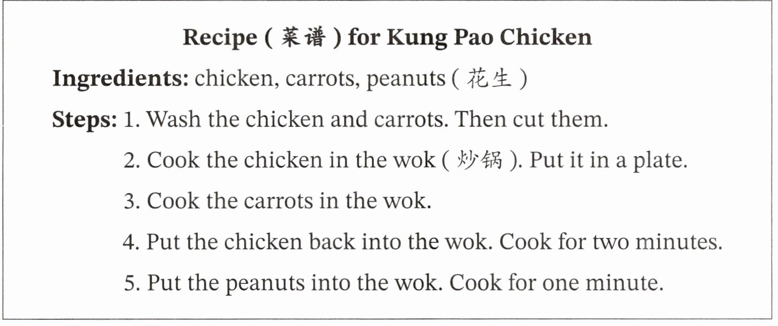 )1. A recipe can tell us how to make a dish.