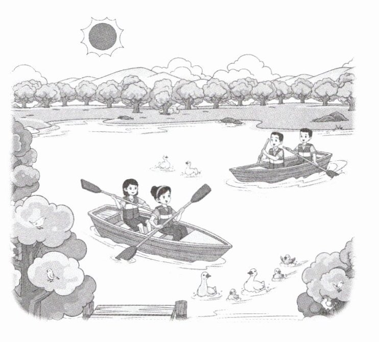 It is sunny. The park is beautiful. There are many trees in the park. There are some birds in the trees. There is also a lake in the park. There are some ducks on the lake. We go boating in the park. We have great fun together.