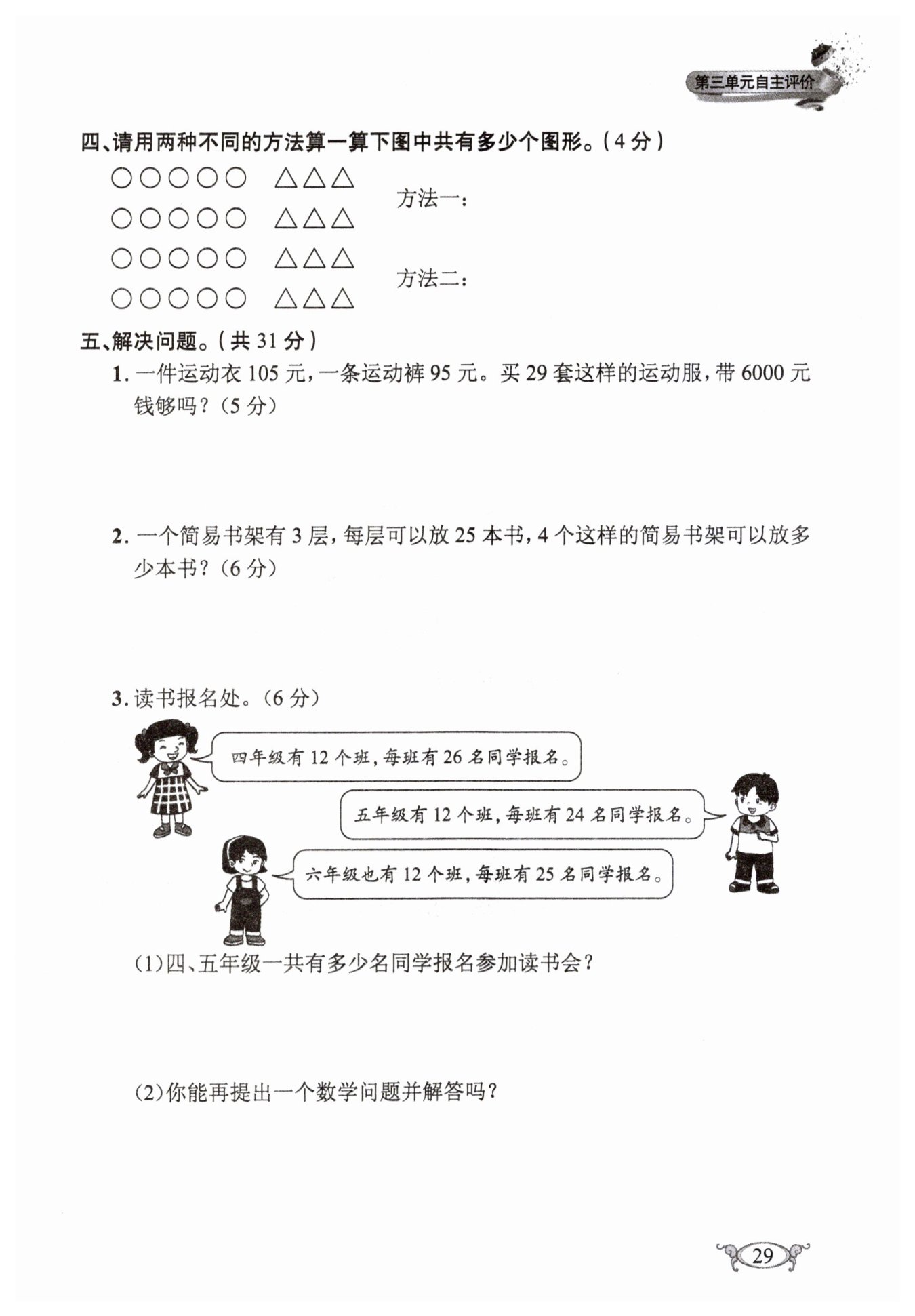 $五年级比四年级少多少人?$