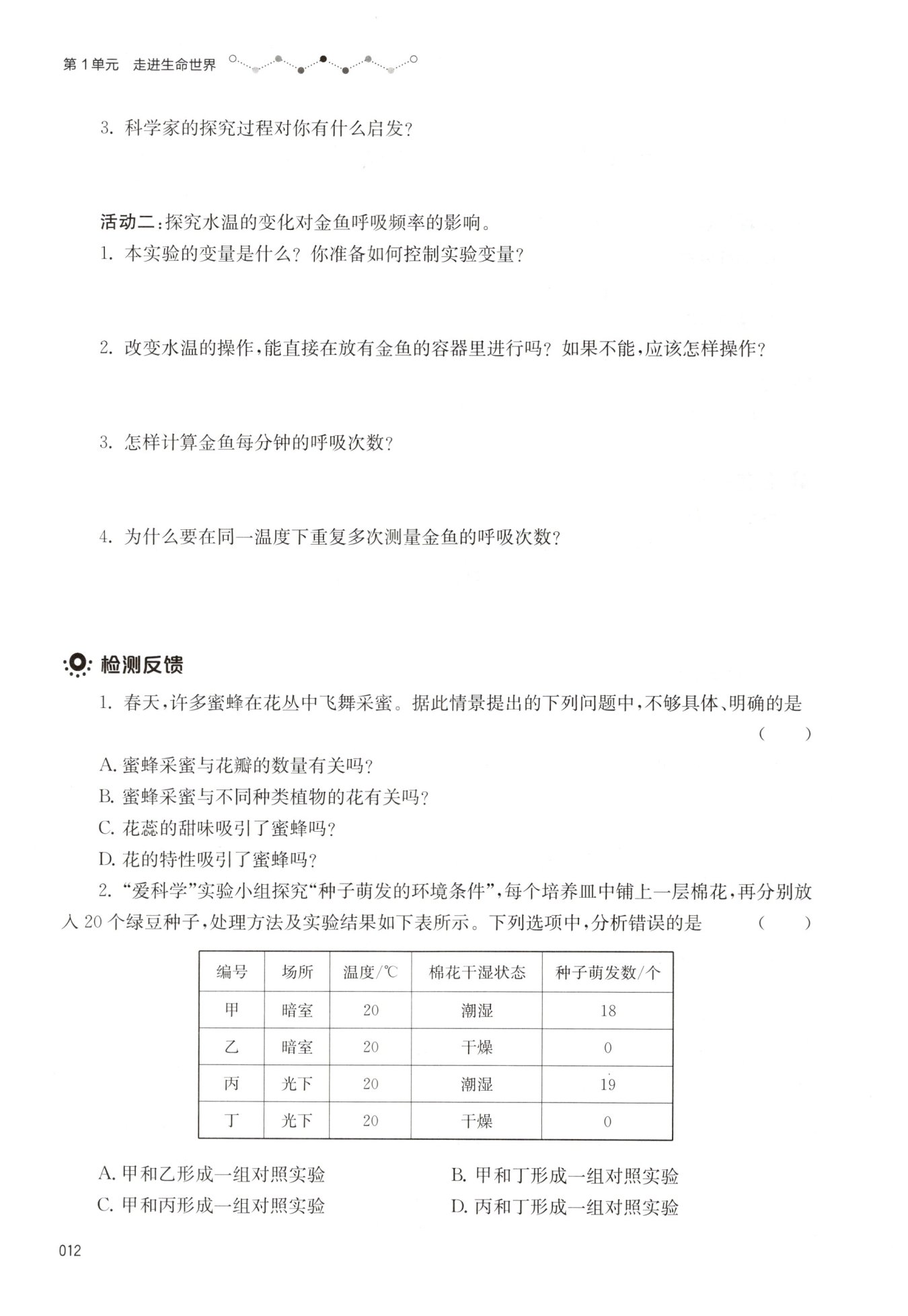 科学探究是学习生物学的重要方式。(合理答案均可)