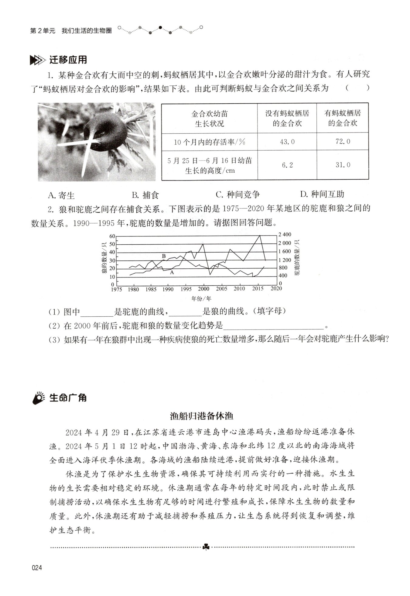 驼鹿的数量急剧减少,狼的数量也减少