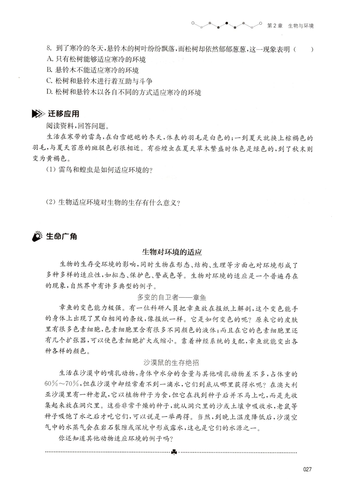 雷鸟和蝗虫都以与环境相似的体色来适应周围的环境。