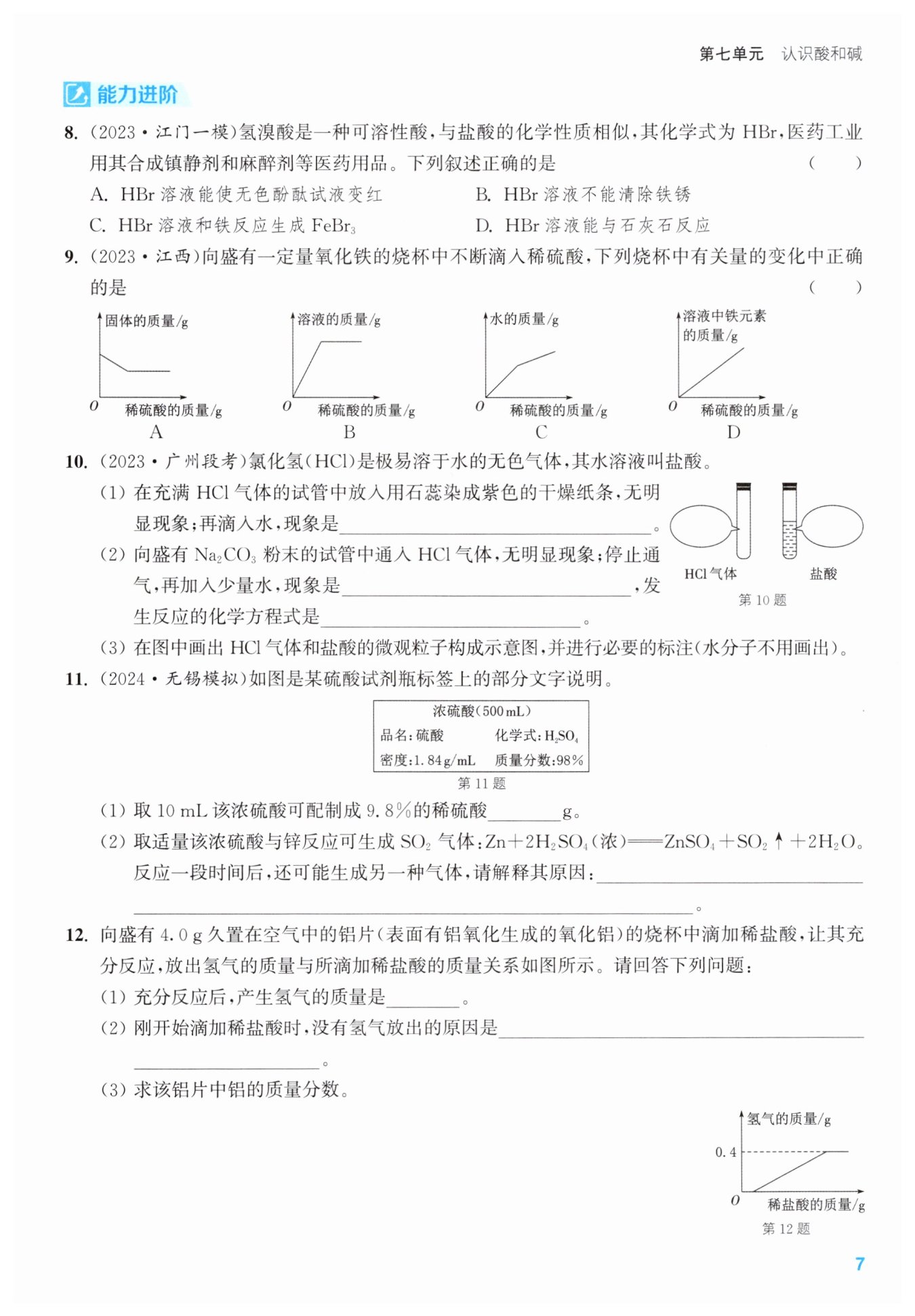 $2 \mathrm {Al}+6\mathrm {HCl}\xlongequal[ ]{ }2 \mathrm {AlCl}_3+3\mathrm {H}_2↑$
