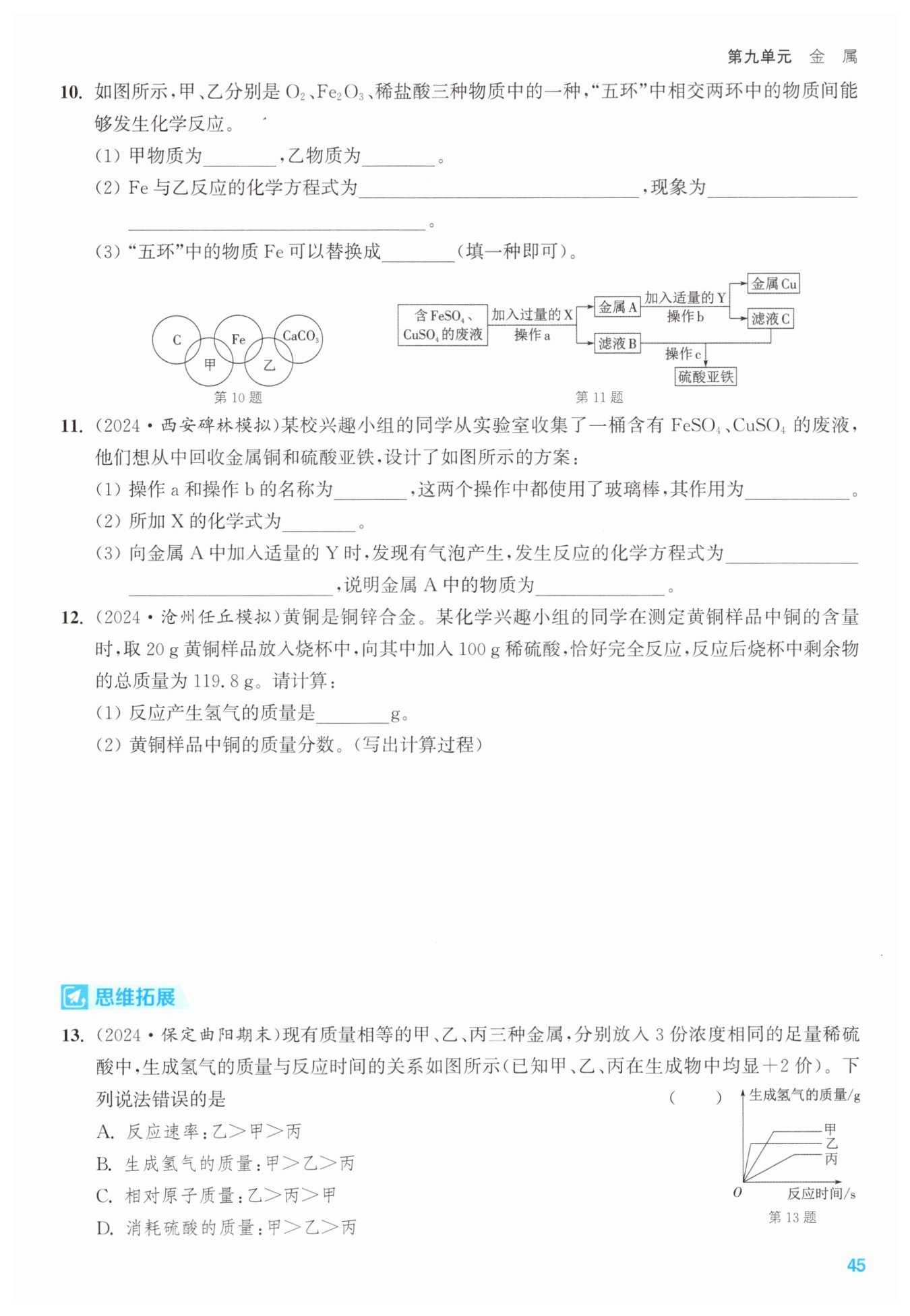 解:设黄铜样品中锌的质量为$x。$$ $