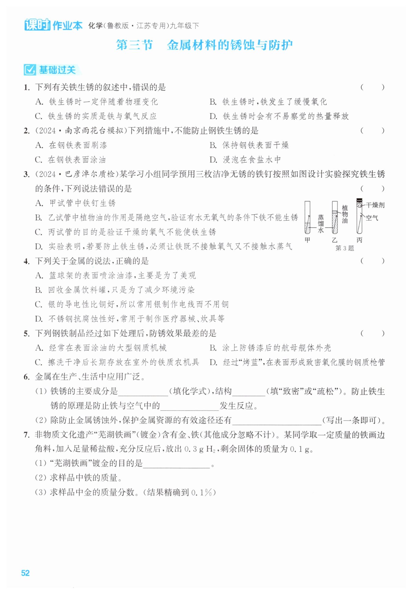 $\mathrm {Fe}+2\mathrm {HCl}\xlongequal[ ]{ }\mathrm {FeCl}_2+\mathrm {H}_2↑$