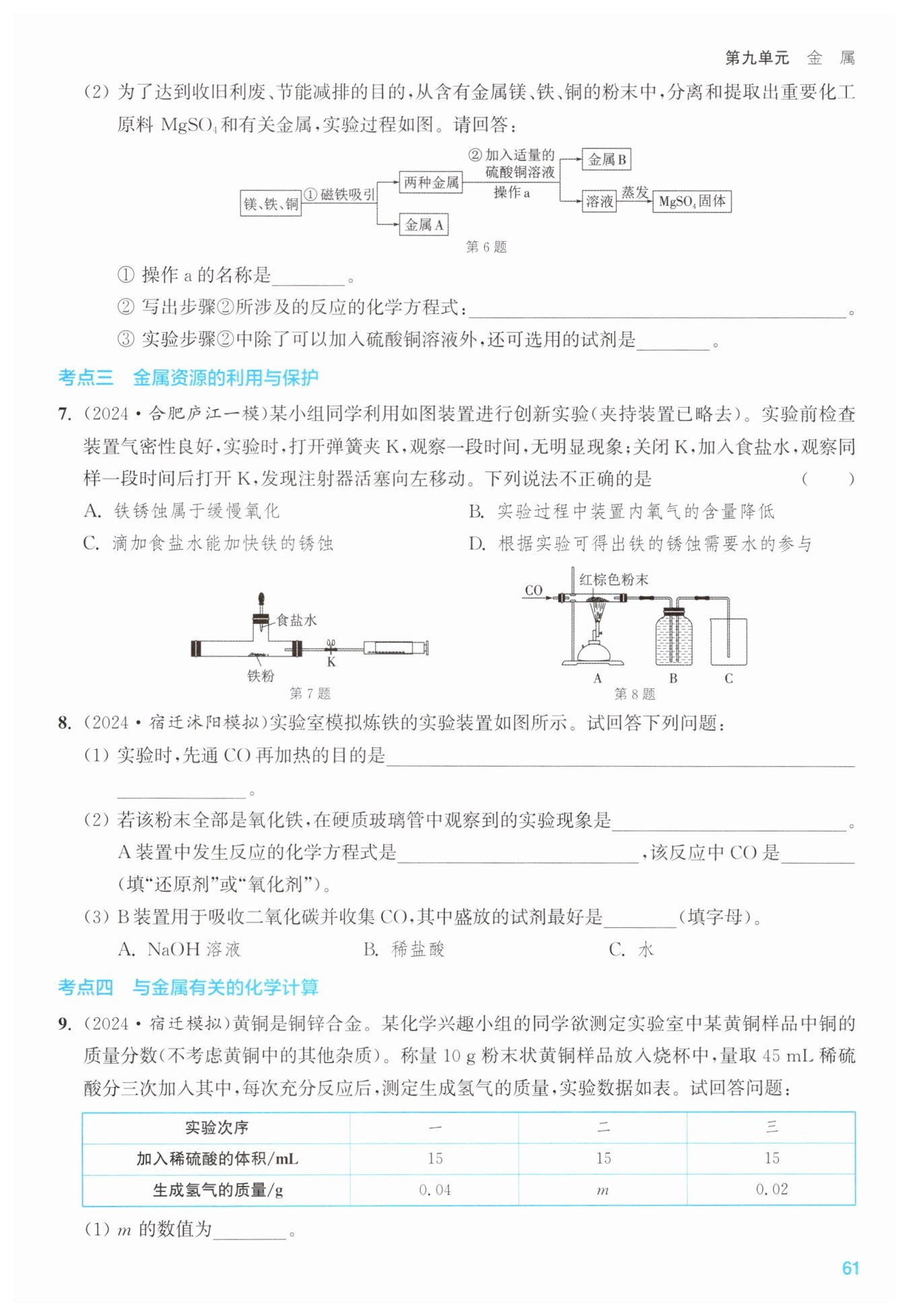 $\mathrm {Mg}+\mathrm {CuSO}_4\xlongequal[ ]{ }\mathrm {MgSO}_4+\mathrm {Cu}$