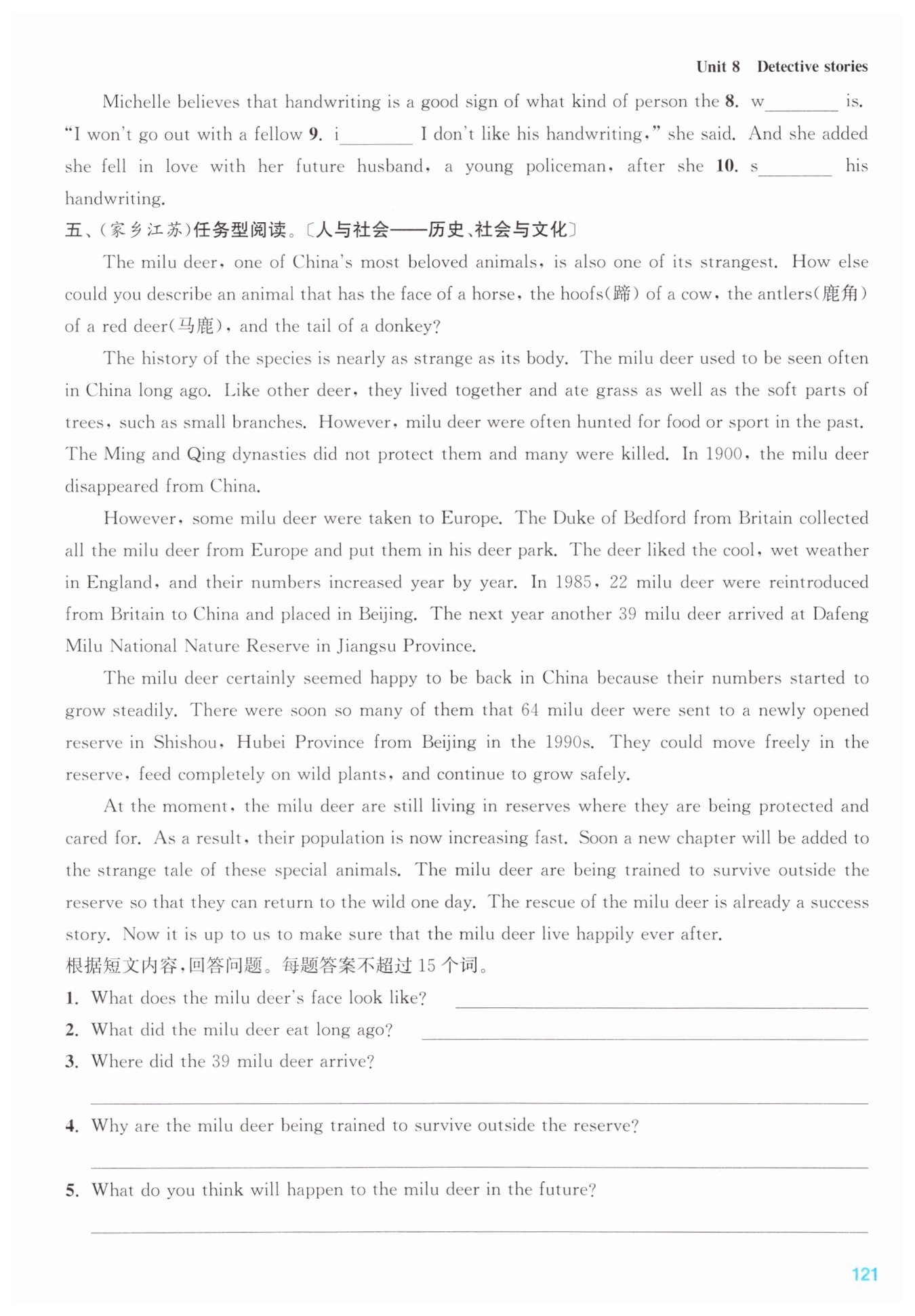 I think the milu deer will live in the wild happily in the future.