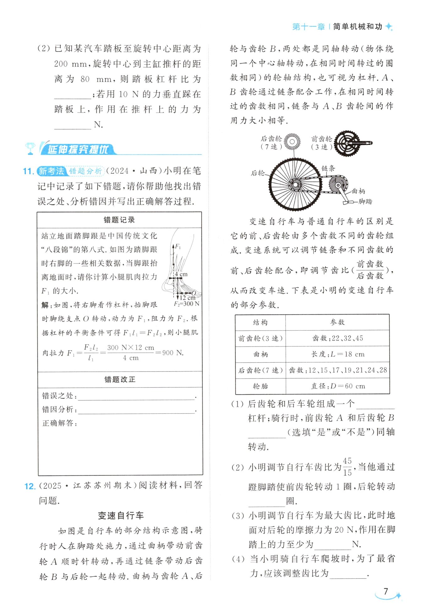 $平衡条件得F_11_1=F_2l_2,则小腿肌 F 肉拉力$