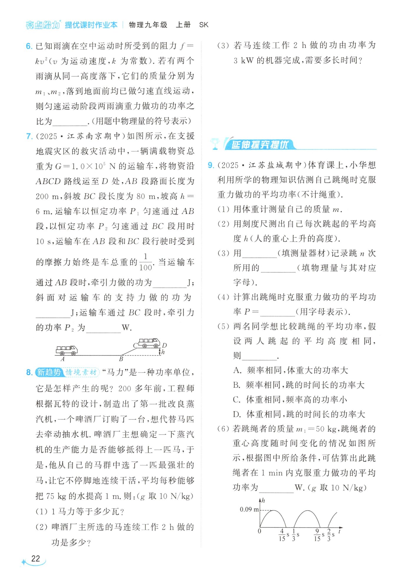 (3)这些功如果由功率为3kW的机器完成,需要的时间$t'' = \frac{W'}{P'} = \frac{5.4\times10^{6}\mathrm{J}}{3\times10^{3}\mathrm{W}} = 1800\mathrm{s}。$