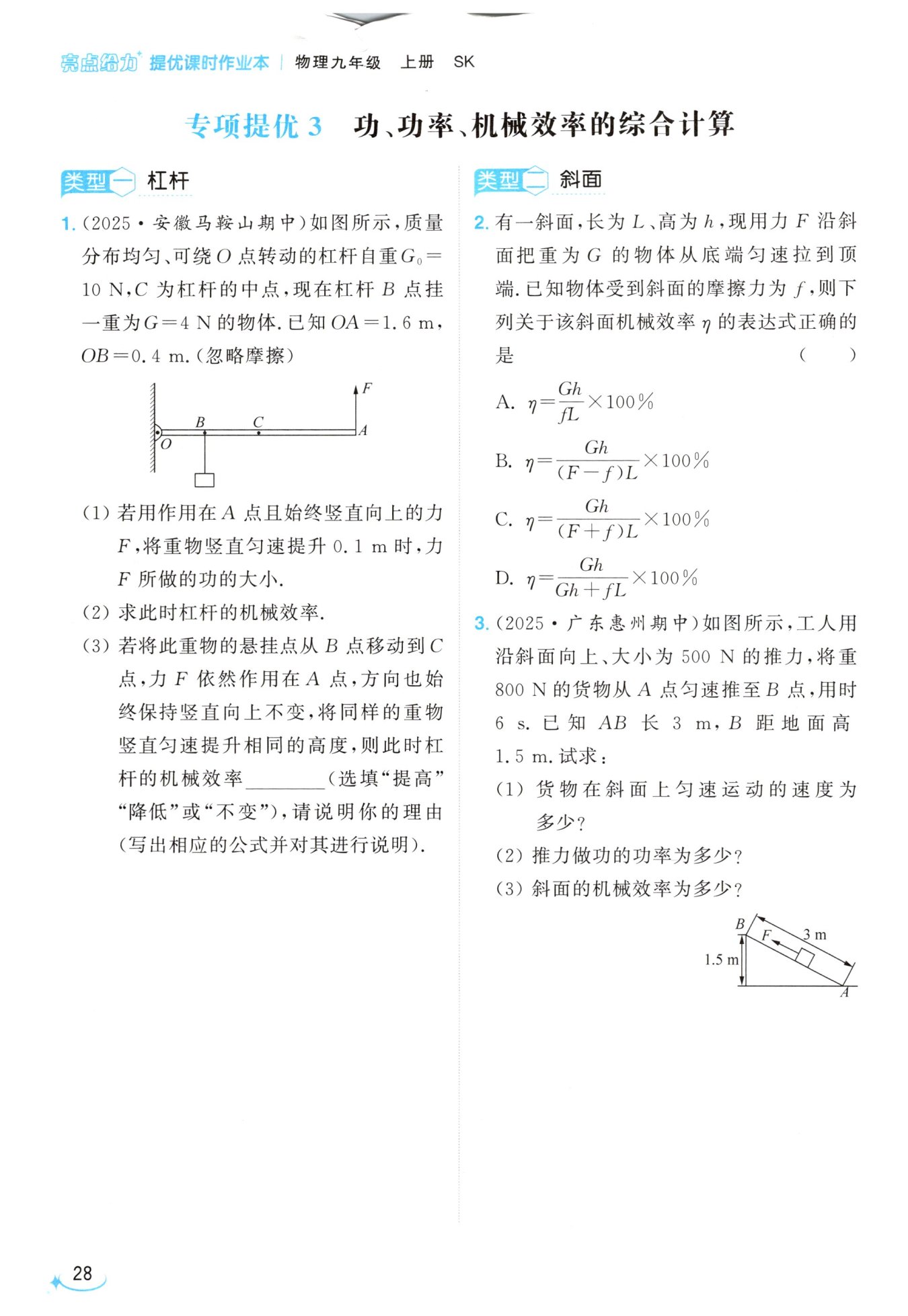 有用功 $ W_{有用} = Gh = 4N×0.1m = 0.4J $,