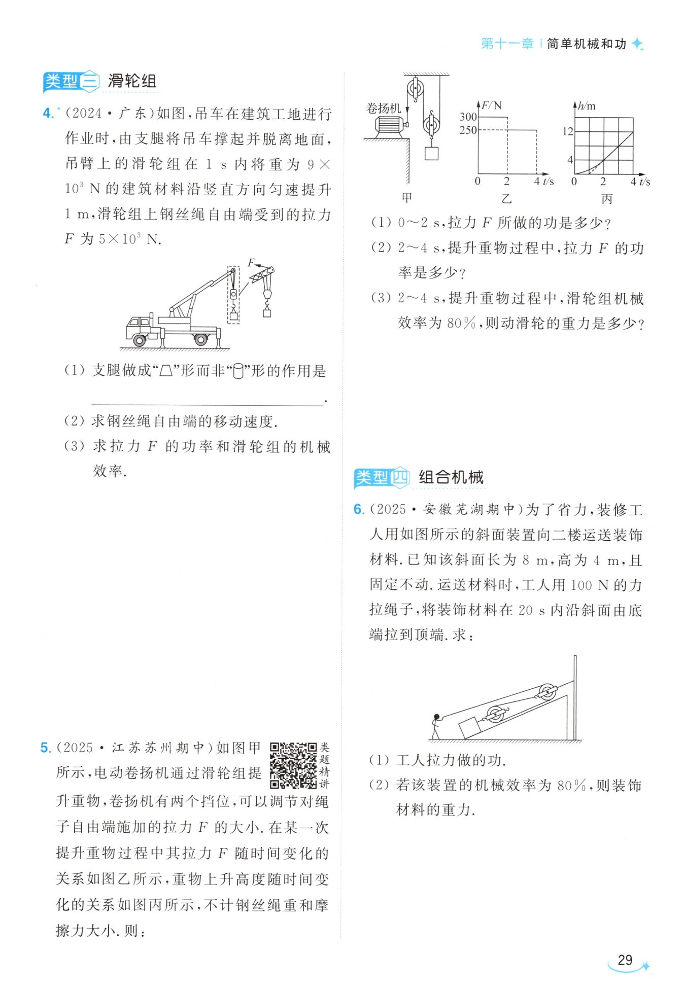 $2~4\ s卷扬机所做的功W_{总2}=F_{2}s_{2}=250\ N\times16\ m = 4000\ J,$