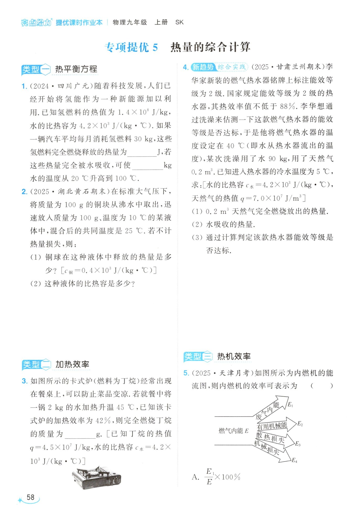(2)水吸收的热量$Q_{吸}=c_{水}m_{水}\Delta t = 4.2\times10^{3}\ J/(kg\cdot^{\circ}C)\times90\ kg\times(40\ ^{\circ}C - 5\ ^{\circ}C)=1.323\times10^{7}\ J。$