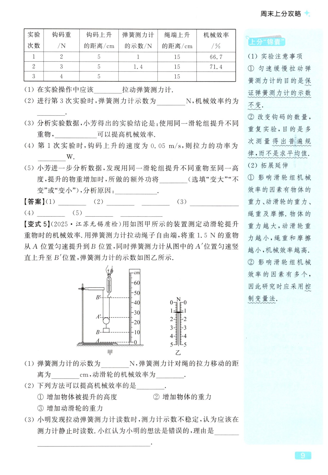 提升的物重增加时,摩擦力变大
